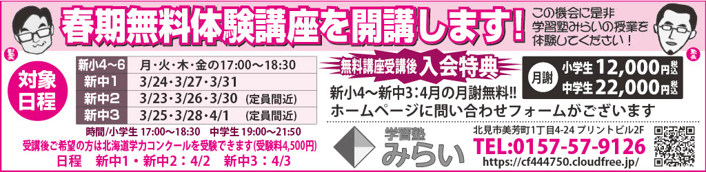 詳しくはお電話(0157-57-9126)かメールにてお問い合わせ下さい。